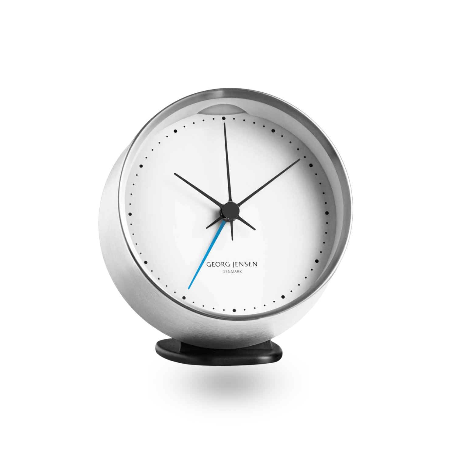 - ICONIC MINIMALIST DESIGN: Uhrbeobachtung wurde nie so attraktiv wie mit diesem auffallenden Regal und Schreibtischalarm. Erstellt ursprünglich im Jahr 1978 von den legendären Georg Jensen Mitarbeiter Henning Koppel, das ikonischen minimalistischen Design ist mit einem Edelstahlgehäuse aktualisiert, der der Uhr ein starkes grafisches Aussehen verleiht.