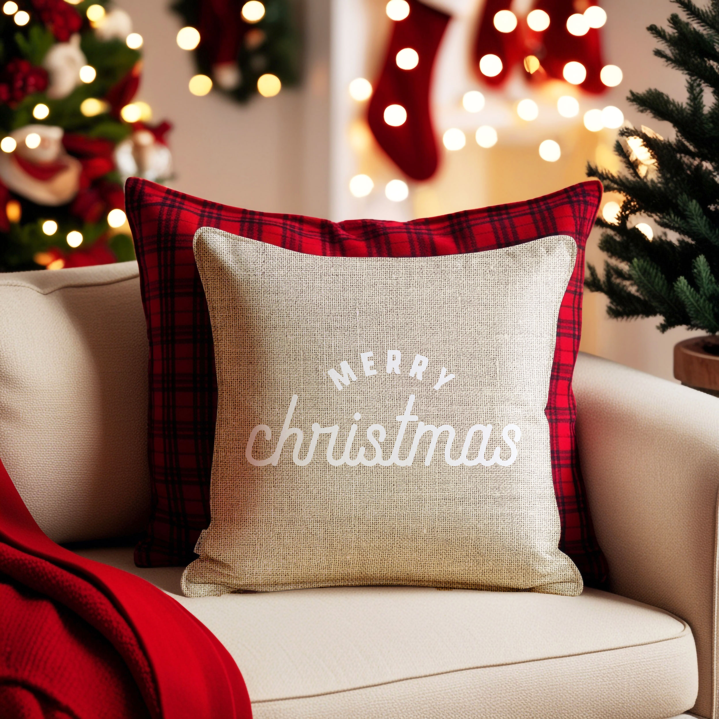 Verwandle dein Zuhause mit diesem gemütlichen Kissenbezug aus gesponnenem Polyester – perfekt, um eine festliche Note in deine vier Wände zu bringen. Die satten, tiefen Farben schaffen eine warme und einladende Atmosphäre – ideal zum Einkuscheln in der Weihnachtszeit.