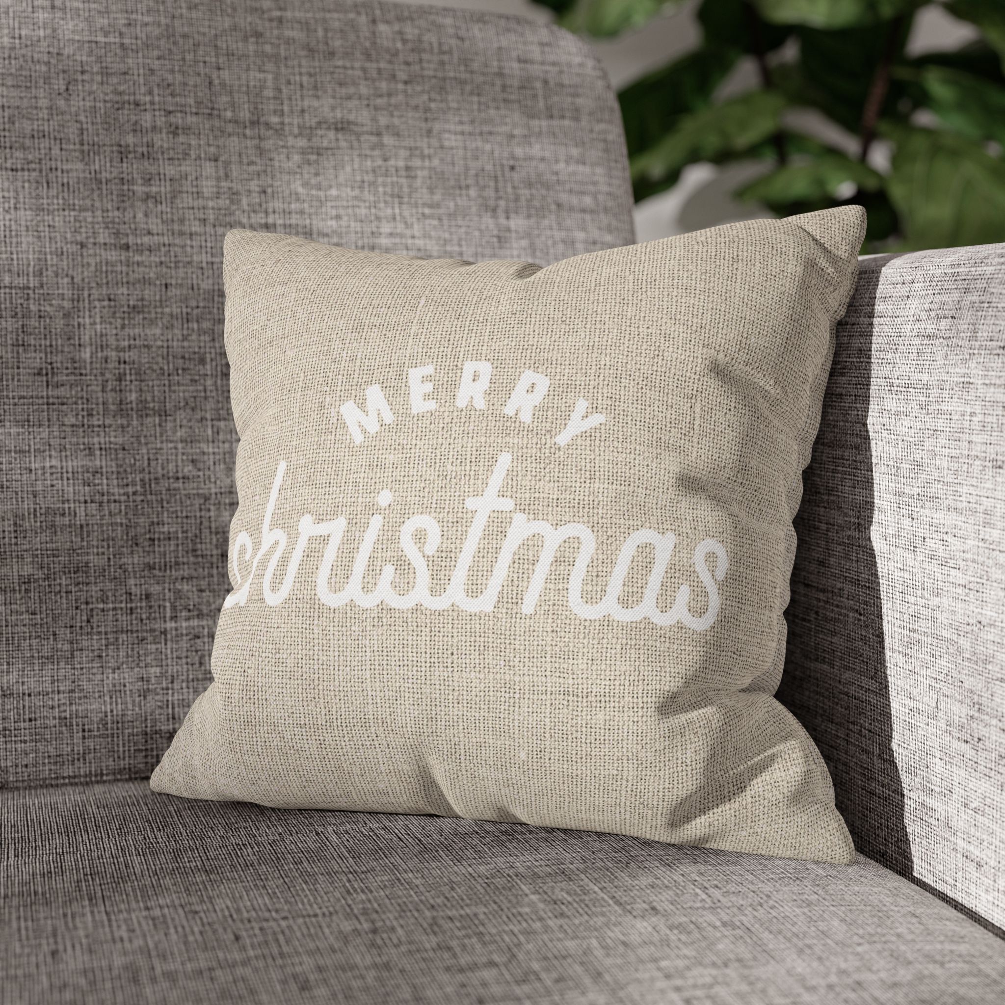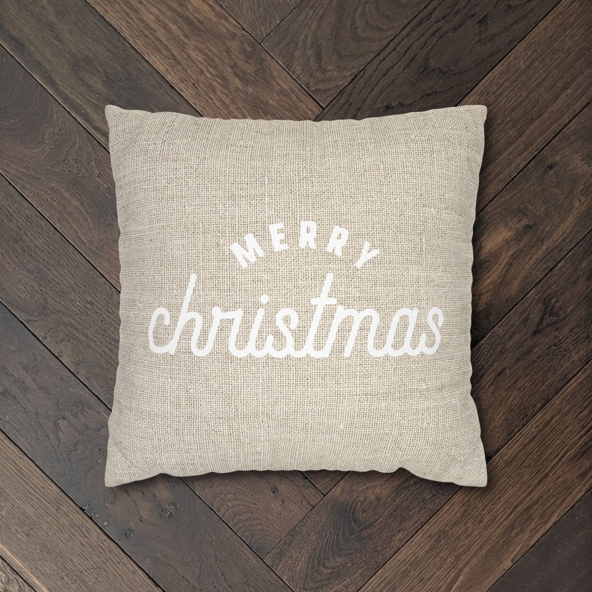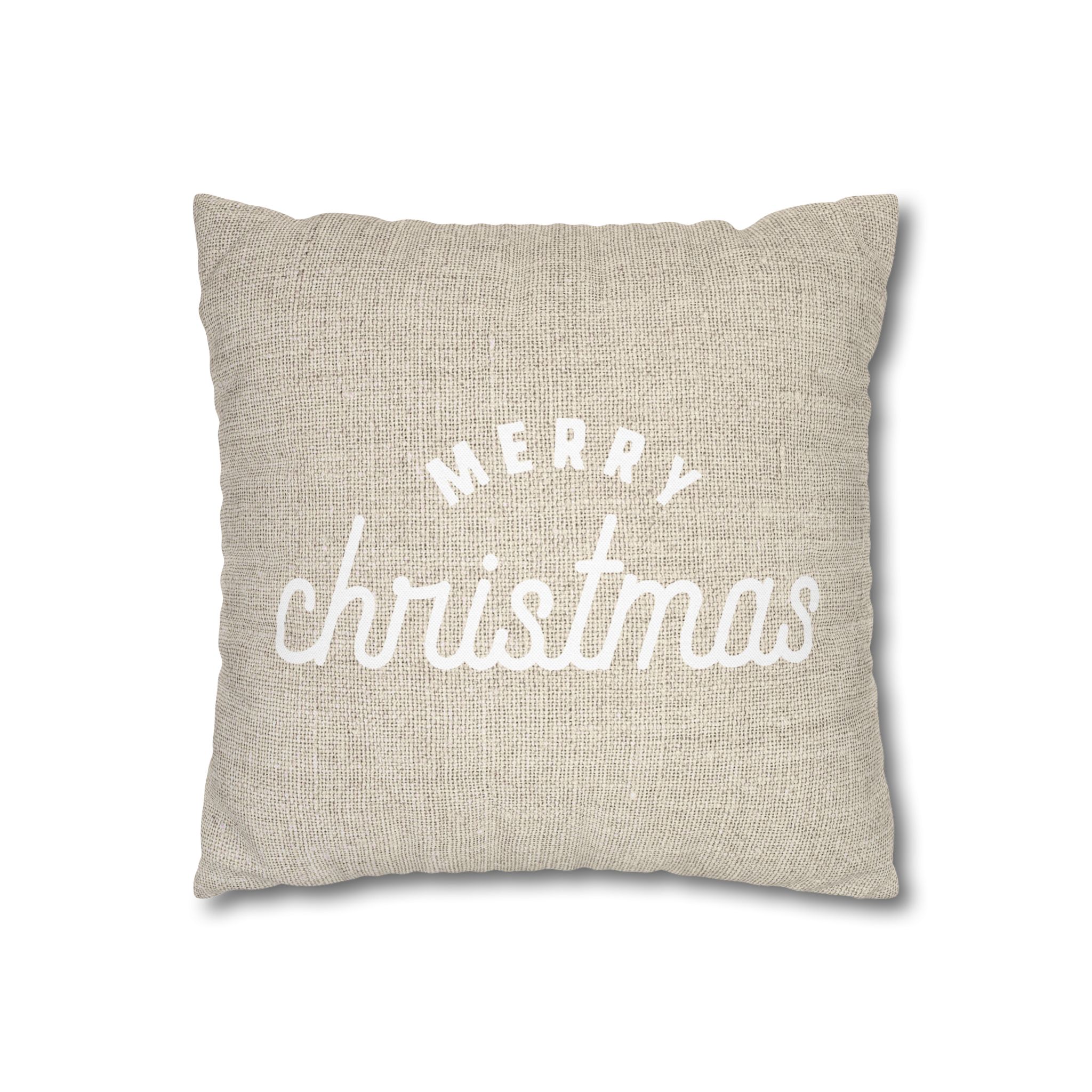 Weihnachtskissen „Merry Christmas Old School“ creme / Leinen Optik