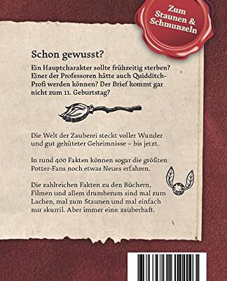 Rund 400 Fakten über die Welt der Zauberei machen diese Sammlung zu einem Must-Have für Potterheads. Dabei wirst du mal lachen, mal ungläubig den Kopf schütteln und manchmal auch komplett erstaunt sein.